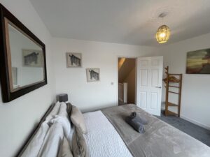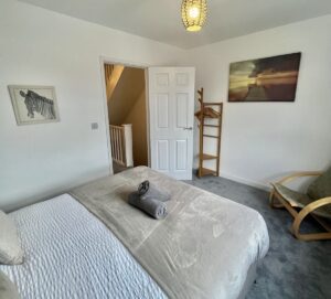 Upstairs, three well-appointed bedrooms with comfortable beds and quality linens ensure a restful night’s sleep, while two full bathrooms plus a convenient downstairs WC make busy mornings easy for families or colleagues sharing. The private garden offers additional space for children to play or for guests to enjoy a quiet coffee or evening drink.